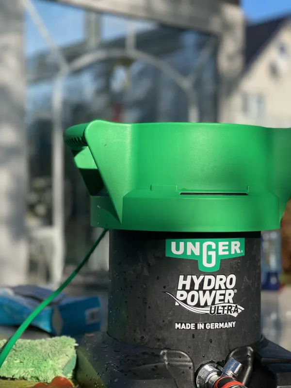 Bei der Osmose-Technik wird das Fenster mit mineralienfreiem Reinwasser gesäubert, das den Schmutz und Staub bindet. Die oberflächlichen Verunreinigungen werden also einfach heruntergespült. Durch die Entmineralisierung des Reinigungswassers in der Osmose-Anlage kommt es nicht nur zu einem besseren Reinigungsergebnis, sondern auch zu keinen Kalkflecken oder vergleichbaren Anhaftungen am Fenster.